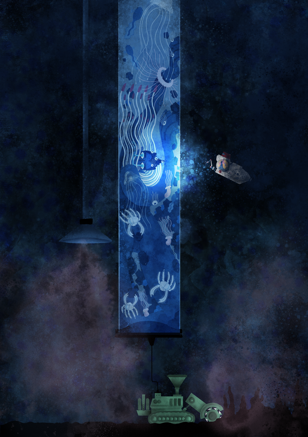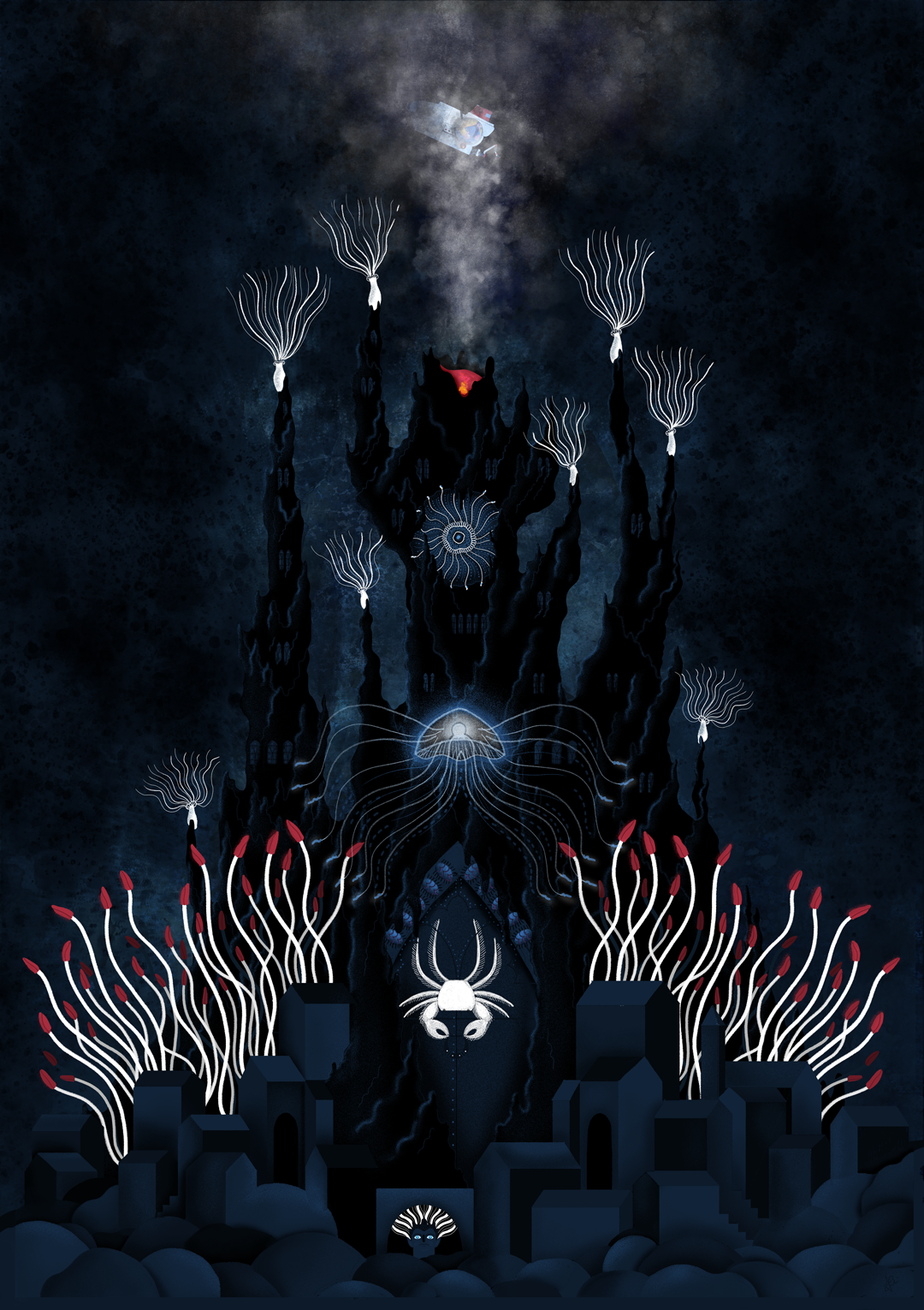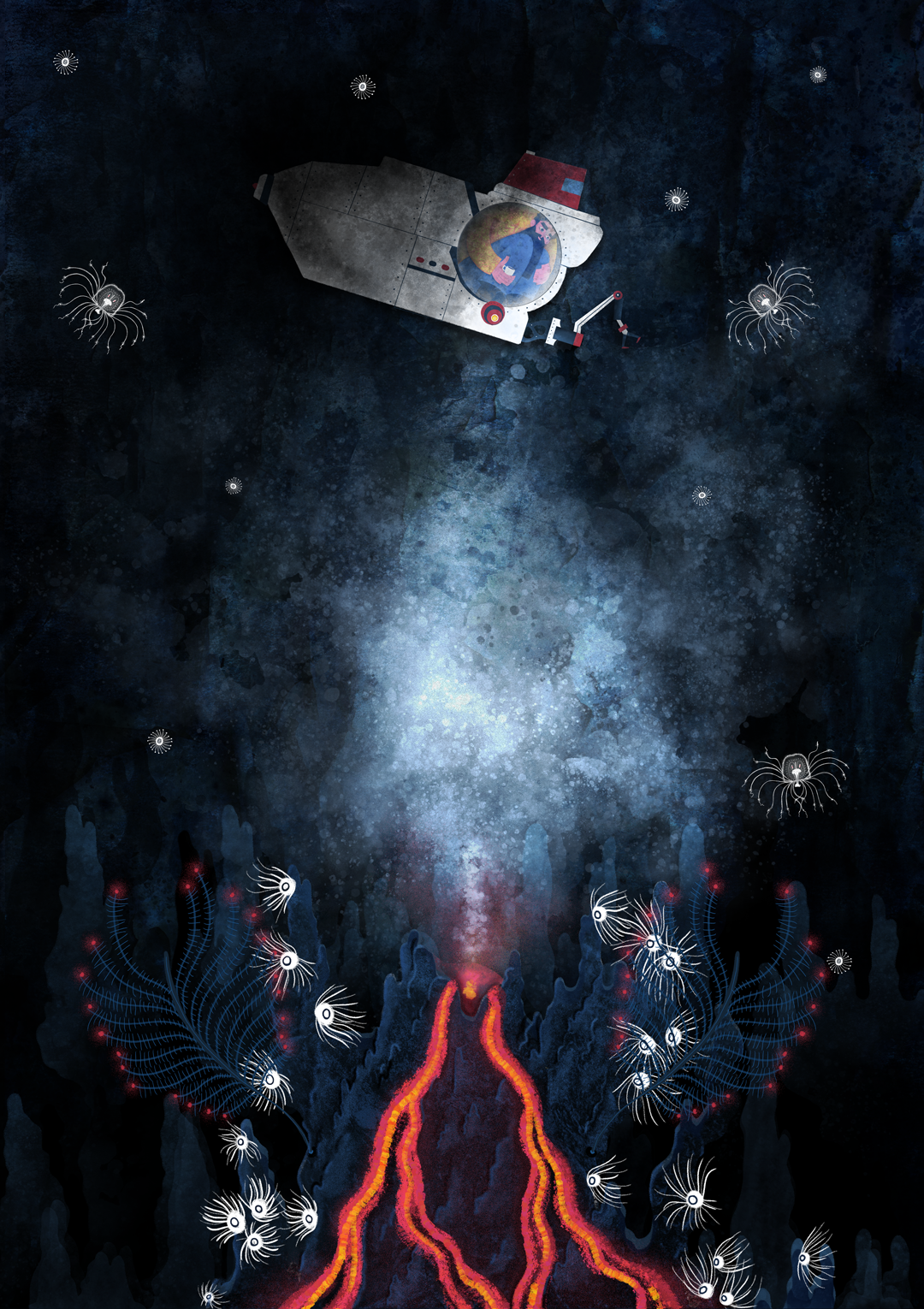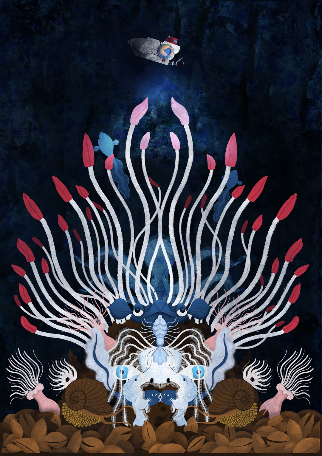 This is the title I chose for the story I created with my 4 illustrated panels for “Chronicles from the Deep,” the exhibition held during the Maredirefare Festival https://www.maredirefare.it/evento/inaugurazione-mostra-cronache-dal-profondo/in Trieste. As previously mentioned, along with 4 other artists, we were selected to create illustrated panels representing 5 themes related to the deep sea, and I was assigned the Mid-Ocean Ridges.